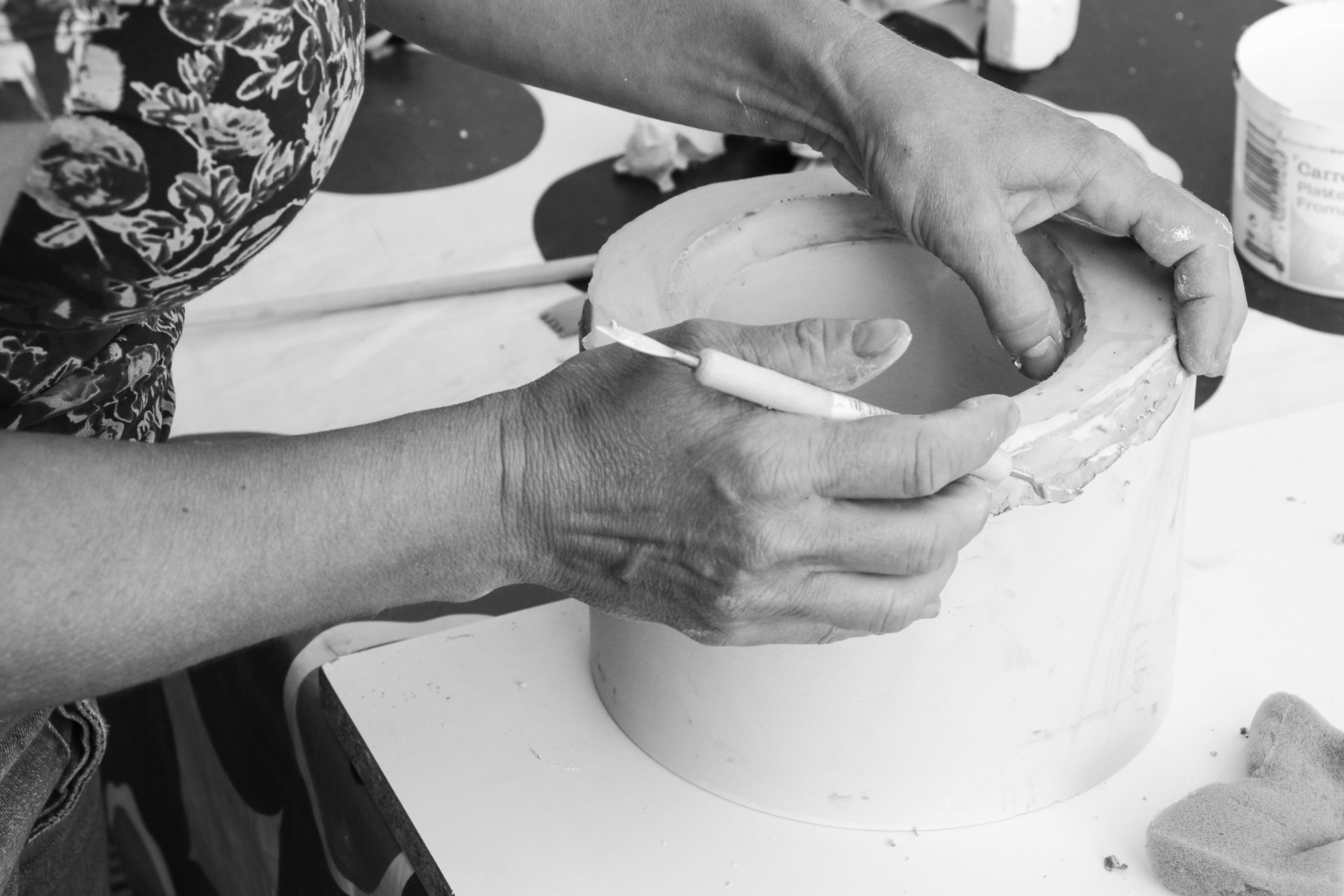 Beatrice vormt de basis van elk stuk. Zij kiest in overleg de vormen en maakt de mallen waarin het porselein wordt gegoten. Vanuit haar vakmanschap ontstaat het gebruiksgoed, objecten die zowel functioneel als verfijnd zijn. Af en toe neemt zij ook de decoratie voor haar rekening, waarbij ze de vorm subtiel aanvult met een eigen visuele toets, vaak geïnspireerd door de natuur.